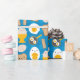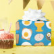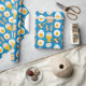 How do you like your eggs? Repeat pattern of kawaii fried eggs, boiled eggs and eggs on toast on a blue gingham background.