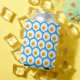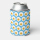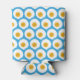 A repeat pattern of happy fried eggs sunny side up on a blue background.