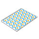 A repeat pattern of happy fried eggs sunny side up on a blue background.