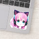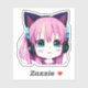 Cute Kawaii girl with headphones and cat ears pink and blue stickers.