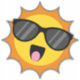 An illustration of a kawaii happy sun with black sunglasses. Swimming on the beach under the sun is one of the activities you can do during summer. This cartoon funny with mouth open emoji design is a gift idea for yellow and orange colours lovers, and outdoor activity lovers.