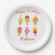 This is cute custom birthday paper plate for kids birthday featuring 6 kawaii funny smiling ice cream cones and popsicles . Change the text using personalise button