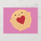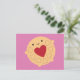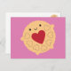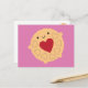 A happy kawaii Jammie Dodger biscuit with a jammy red heart on a pink background. Perfect for fans of retro British biscuits.