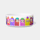 This is a heavy, durable bowl decorated with Tibbies of many colors, the perfect size for hungry/thirsty Tibs. The design is interesting and printing clear.