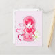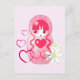 Cute kawaii love valentine matryoshka (Russian nesting doll), by the artist Angela Flemming in her Bunny Style. The matryoshka has pink hair, and is in pink tones all over, and holds a love heart, and is embellished on the sides with two white daisies and three outlined hearts.