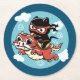Kawaii Ninja Cat Riding a Red Dragon Round Paper Coaster