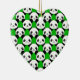 A cute panda bear, kawaii cartoon style pattern. Original design in black and white with green background.
