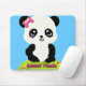 Very cute mousepad, featuring Kawaii Panda. With a cute pink 'bow' in her 'hair' sitting on warm grass with little flowers, on a bright blue sky day.