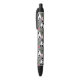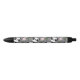 Smiling panda faces, flowers, and bamboo in a kawaii style with a grey background