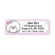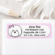 These adorable Bichon Frise address labels have a pink chequered background. A cartoon Bichon is on the right, and you can instantly personalise the name and address found on the right. Very cute pet lover products at Menagerie Mayhem.