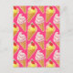 Waffle cones with strawberry ice cream scoops and frozen yogurt pattern