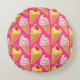 Kawaii pink pattern with strawberry ice cream round cushion