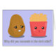 Potato is disappointed that his bro has succumb to the dark side to become deep fried French fries! Message inside reads "Time to lose weight, mate!" Amuse your friends with this funny cartoon with cute food characters and at the same time advocate for healthier food choices instead of fast food to maintain a healthy weight!