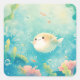 Kawaii Pufferfish Watercolor Under the Sea Nursery Square Sticker