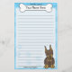 Colourful Kawaii Doberman Pinscher stationery with a cartoon dog breed in the lower right corner. The top portion can be instantly personalised with your name inside the big doggie bone. Border and paper background are a bright blue. This is the red and tan doberman.