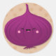 Kawaii Red Onion on Brown Polka Dots Classic Round Sticker