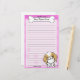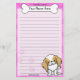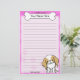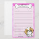Colourful Kawaii Japanese Chin stationery with a cartoon red and white pooch in the lower right corner. The top portion can be instantly customised with your name inside the big doggie bone. Border and paper background are pink.