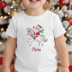This personalised, cute and kawaii t-shirt features a jolly, waving Santa Claus riding a sparkly white unicorn with a magnificent rainbow mane and tail.