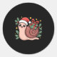 Kawaii Santa Snail With Wrapped Box And Holly Star Classic Round Sticker