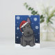 Send Scottie Christmas Postcards to all your animal-loving friends this year! A cute kawaii black Scottish Terrier cartoon sits upon freshly fallen snow wearing a Santa cap, while snowflakes drift gently down all around him.