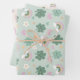 Kawaii Shamrock & Rainbow Pastel Green set of 3 Wrapping Paper Sheet