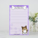 Fun Kawaii Sheltie with a cartoon dog breed in the lower right corner. The top portion can be instantly personalised with your name inside the big doggie bone. Border and paper background are purple.