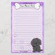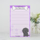 Fun Kawaii Newfoundland stationery with a cartoon newf in the lower right corner. The top portion can be instantly personalised with your name inside the big dog bone. Border and paper background are a purple.