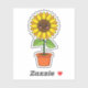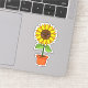 An illustration of a happy kawaii sunflower plant in an orange pot. This cute cartoon smiley flower design is a gift idea for nature lovers, kawaii lovers and floral lovers.
