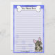 Colourful Kawaii Swedish Vallhund stationery with a cartoon dog breed in the lower right corner. The top portion can be instantly personalised with your name inside the big doggie bone. Border and paper background are periwinkle.