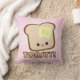 A cute pillow featuring a smiling piece of toast with melting butter above the word Toasty! In Bauhaus 93 font. A cute breakfast treat for fans of kawaii humour!