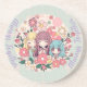 Kawaii Trio – Cute Anime Girls & Floral Vibes Coaster