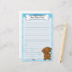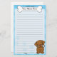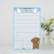 Colourful Kawaii Vizsla stationery with a cartoon dog in the lower right corner. The top portion can be instantly customised with your name inside the big doggie bone. Border and paper background are blue.