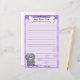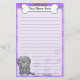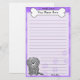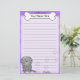 Cute Kawaii White Puli stationery with a cartoon rott in the lower left corner. The top portion can be instantly customised with your name inside the big doggie bone. Border and paper background are purple.