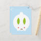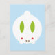 A kawaii take on the traditional Japanese snow rabbit with leaf ears, berry eyes and a cute twig mouth on a winter blue background.