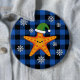 Kawaii Xmas Starfish on Blue Buffalo Pattern 6 Cm Round Badge