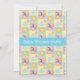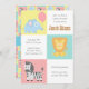 Colourful cartoon design of cute zoo animals consisting of blue elephant, orange lion and zebra. Reverse page consists of same design arranged in a pattern style. Design is gender neutral, making it suitable for both baby boy and girl. Make your baby shower extra special with this adorable baby shower invitation that is going to impress your guests. It is also suitable for kids theme birthday parties like safari and jungle theme. Invite can be easily personalised with your party details. Matching party favours available. Designed by Rusty Doodle.