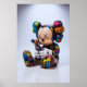 This captivating wall art poster features a prominent Kaws Companion figure, rendered in a striking, vibrant interpretation. The iconic "X" eyes and signature skull-like head of the Companion are presented in a clean white, contrasting beautifully with the dynamic, graffiti-inspired body. The figure is seated on a simple concrete block, holding a smaller, colourful version of itself, creating a compelling dialogue between the self and its creation, or perhaps a moment of quiet reflection.