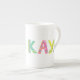 Kaya name graphic flowers stars green yellow pink bone china mug