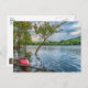 A postcard featuring a red kayak floats close to shore near a cute little crooked tree on a cloudy summer morning in Oak Grove Arkansas, United States on Table Rock Lake. Looking for more prints or products? Feel free to visit my store: http://www.zazzle.com/timelessmomentsphtgy