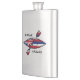 The product is a good size and came exactly as it was pictured.  The lid is not attached to the flask, which could be dangerous on drunken nights... The print came out surprisingly well and looks very sharp.  Would definitely recommend.