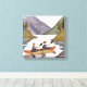 Kayak Ride on Lake | Mountain Nature Watercolor Canvas Print