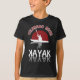 Silhouette of a kayaker in front of a sunset with the word Kayak reflecting in the water.