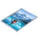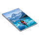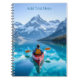 Personalised Notebook with an illustration of a man kayaking in the ocean by the snow topped mountains. Pretty serene blue tranquil water and pine trees surround him on a peaceful journey.