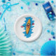 A kayaking design of an orange kayak in the water. This design looks really effective on these Paper Plates