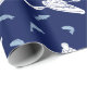 Kayaks and Fish Navy Blue and White Patterned Wrapping Paper