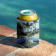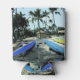 Custom Hawaiian beach and kayaks art on this unique can cooler.