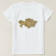 On the front of this shirt an editable title and slogan accompanies the Kazakhstani flag with its yellow motif, sun and eagle symbols on blue. The back displays a detailed map of Kazakhstan.