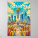 Kazakhstan Illustration Travel Art Vintage Poster