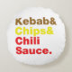 Kebab & Chips & Chilli Sauce. Round Cushion