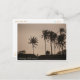 Capture the serene beauty of Kedungu Beach at sunset with this postcard featuring silhouetted palm trees and the soft glow of the Balinese horizon. Visitors gather to enjoy the tranquil ocean view and the magical tropical skies, creating a scene of relaxation, reflection, and coastal charm.